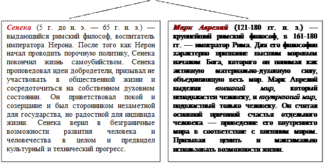 Схема 47. Представители стоической философии Сенека и Марк Аврелий.