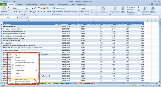 Рис. 3.18. Выделение всех листов книги