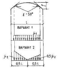 При определении нагрузки у торца фонаря для зоны В значение коэффициента m в обоих вариантах следует принимать равным 1,0.