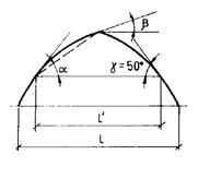 При b ³ 15° необходимо использовать схему 1,б, принимая l = l´; при b < 15° - схему 2