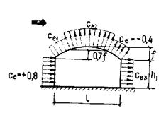| Для покрытия здания на участке АВ коэффициенты се следует принимать по схеме 4.