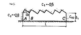 | Для наветренного фонаря коэффициент се следует определять в соответствии с указаниями к схеме 2, для остальной части покрытия – как для участка ВС схемы 5