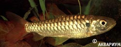 Мирная. не слишком подвижная изящная стайная рыба, которая получила спое наименование по золотистому светящемуся пятну на верхнем основании хвоста и верхней половине радужной оболочки глаза. Самцы и самки имеют одинаковую окраску, но самцы меньше и стройнее.