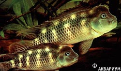 Наряду ей свободным пространством для плавания важны укрытия в виде коряг или сооружений из камней, а также растительность. В период нереста копают ямки. Самцы занимают территорию. Полная семья.