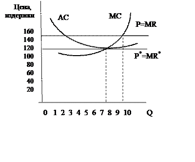 В условиях несовершенной конкуренции фирма, как в краткосрочном, так и в долгосрочном периодах может получать максимальную прибыль при таком объеме производства, когда предельный доход равен предельным издержкам, т.е. MR=MC (в нашем примере при объеме производства на уровне 6 ед. продукции, см. рис. 2).