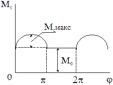 Мо – момент холостого хода механизма. Такие нагрузки появляются при наличии у рабочей машины кривошипно-шатунной, кулисной, карданной передачи. Во всех случаях, когда скорость двигателя при работе с такими нагрузками изменяется мало и может быть принанята постоянной, равной wср, для упрощения анализа периодические нагрузки рассматривают как функции времени: