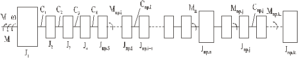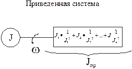 j1,j2,…,jn – передаточные отношения между осью (валом) двигателя и осями отдельных вращающихся элементов (звеньев). Часто приведенный момент инерции системы считают равным сумме моментов инерции двигателя и приведенного момента инерции рабочей машины, а моменты инерции звеньев передаточного механизма (редуктора) учитывают увеличением момента инерции двигателя в “d” раз, т.е.