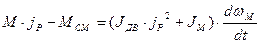 При проектировании эл.приводов и выборе двигателей для проектируемой установки в принципе можно брать двигатели разных номинальных скоростей. Исходя из экономических соображений двигатели, как правило, выпускаются на скорости 750- 3000 об/мин., т.к. повышение номинальной скорости позволяет уменьшить размеры, вес и стоимость машины. Рабочие же органы многих механизмов вращаются со скоростями 100-300 об/мин. Поэтому между двигателем и рабочим органом механизма для согласования скоростей ставится редуктор. Можно найти такое значение передаточного отношения jp, при котором ускорение на рабочем органе, а следовательно быстродействие эл.привода будет наибольшим для одних и тех же двигателя и механизма. Принимая КПД редуктора равным 1, для рабочих органов механизма уравнение движения можно записать в виде: Здесь МСМ, JM и wМ – момент сопротивления, момент инерции и скорость рабочего органа механизма. JДВ – момент инерции двигателя. Наивыгоднейшеее (оптимальное) передаточное отношение редуктора, соответствующее максимуму ускорения: Однозначно задача решается (как для разгона, так и для торможения) только в случае МСМ=0, когда: При Приравняв нулю производную Термин “наивыгоднейшее передаточное отношение” условен, т.к. величина jP получена только из условия реализации наибольшего ускорения на рабочем органе механизма. Не рассмотрен вопрос согласования скоростей и мощностей двигателя и механизма, без решения которого трудно правильно выбрать jP. Во многих случаях при выборе jP принимается во внимание не только минимум времени разгона привода, т.е. максимум ускорения, но и минимум потерь энергии при переходных режимах. Оказывается, что как по условию минимального времени разгона, так и по условию минимума потерь энергии условие наивыгоднейшего передаточного отношения получается одинаковым и сводится к тому, чтобы произведение Если вопрос рассматривать с т.з. двигателя, то тот двигатель из нескольких двигателей одного типа и одинаковой мощности будет более пригодным, для которого произведение