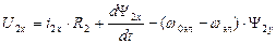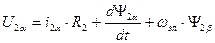 Пользуясь полученными формулами, преобразуем уравнения электрического равновесия и уравнения потокосцеплений к осям u,v. Для получения преобразованных уравнений в уравнениях электрического равновесия и уравнениях потокосцеплений с помощью формул преобразований заменим все реальные переменные, выразив их в осях u,v. Для пояснения сущности ограничимся только преобразованием уравнений равновесия для цепи статора, т.к. для ротора преобразования будут аналогичными. С этой целью подставляем выражения реальных переменных в уравнения обратного преобразования: