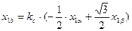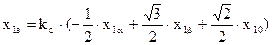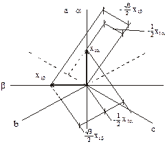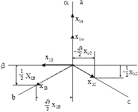 Математическое описание механических характеристик получено для 2-х фазной модели машины. Большинство применяемых в промышленности электродвигателей являются 3-х фазными. Поэтому появляется необходимость преобразования переменных 3-х фазной машины к переменным 2-х фазной и наоборот. Основой для такого преобразования может служить физический смысл координатных преобразований. Ведь вращающееся магнитное поле может быть создано как сдвинутым на 120° токами 3-х фазной обмотки, оси каждой из фаз которой смещены в пространстве на 120°, так и сдвинутыми на 90° токами 2-х фазной обмотки, оси каждой из которых смещены также на90°. Следовательно, один и тот же результирующий вектор МДС может быть создан как 3-х фазной, так и 2-х фазной обмоткой. Мгновенное положение вектора результирующей МДС определяется геометрической суммой векторов МДС соответствующих обмоток. Токи этих обмоток можно рассматривать как проекции вектора результирующей МДС на координатные оси. Поэтому для получения формул фазного преобразования можно использовать тот же принцип, что и для получения формул координатных преобразований. Разница только в том, что преобразованные переменные будут не равны, а пропорциональны сумме проекций реальных переменных на координатные оси. Кроме того, должно быть соблюдено условие равенства(инвариантности) мощности 3-х фазной и 2-х фазной систем. Учитывая это, представим реальные переменные (токи, напряжения, потокосцепления) статора 3-х фазной машины в виде векторов x1a,x1b,x1c.