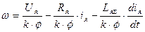 Для рассмотрения особенностей механических характеристик при ослабленном Ф, рассмотрим уравнение электромеханической характеристики и выражение для тока якоря.