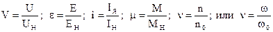 Часто для удобства расчетов и сравнения характеристик двигателей различной мощности уравнение механической характеристики представляют в относительных единицах. Применение их делает ненужным переход от одних единиц измерений к другим, проще сравнивать варианты расчетов, выполненных для двигателей, отличающихся по своим номинальным данным. Характеристики двигателей, различных по своим номинальным данным, становятся универсальными. За базовые величины принимаются номинальные значения Uн, Iн, Фн, Ен, Мн и т.д. За базовую единицу скорости ДНВ, АД и СД – принимается скорость w0, а для двигателей последовательного возбуждения - wн. За базовую единицу сопротивления принимается сопротивление якорной цепи, которое при неподвижном якоре и Uн ограничивает ток в якоре до Iян. Его называют номинальным сопротивлением. Схематично это можно представить так.