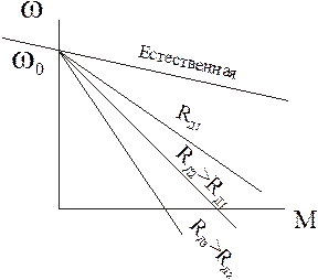 видно, что увеличение сопротивления якорной цепи вызывает уменьшение скорости двигателя. Это объясняется тем, что при этом увеличивается падение напряжения на якоре и при каждом