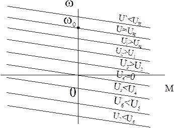 данном моменте сопротивления уменьшается ток, а следовательно и момент двигателя. При изменении напряжения, подводимого к якорю двигателя, изменяется w0. Жесткость характеристик остается неизменной. Семейство механических характеристик, соответствующих различным напряжениям на зажимах двигателя изображено на рис. Отсюда видна возможность регулирования скорости двигателя изменением подводимого напряжения. Но для этого необходимо питать двигатель от источника регулируемого напряжения