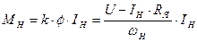 Если RЯ неизвестно, его можно ориентировочно определять по потерям в меди, исходя из известного положения, что при нагрузке, соответствующей максимальному КПД переменные потери равны постоянным. Поскольку вблизи максимума КПД меняется мало, можно считать, что КПД максимален при номинальной нагрузке, т.е. при РН. Полные потери при номинальной нагрузке равны разности потребляемой из сети мощности и номинальной мощности РН на валу, т.е. Номинальные потери в меди в этом случае равны половине полных потерь, Здесь Для двигателей последовательного возбуждения: Для краново-металургических двигателей смешанного возбуждения Номинальный момент