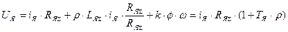 Из схемы следует, что при отсутствии реакции якоря при UB=const и Цепь возбуждения представляет собой апериодическое звено с постоянной времени ТВ, которая для двигателей от нескольких кВт до нескольких тысяч кВт находится в пределах (0,2¸5,0)с. Индуктивность ее можно определить по формуле.