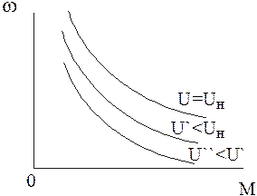 При изменении напряжения на зажимах двигателя характеристики перемещаются вниз или
