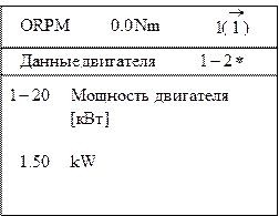 В соответствии с информацией на шильдике асинхронного двигателя устанавливаем мощность подключенного двигателя в кВт. В данном случае к преобразователю стенда подключен двигатель мощностью 1.50 кВт. Для ввода установленной мощности нажимаем клавишу ОК местной панели управления. На экране дисплея выделяются численные значения мощности двигателя, доступные для редактирования. Для изменения численных значений мощности двигателя навигационными клавишами