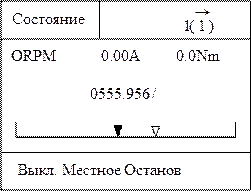 В случае неудачного завершения процедуры автонастройки преобразователь частоты переключается в аварийный режим с отображением на экране типа аварии. Для выяснения причины неудачного завершения автонастройки обратитесь к руководству по эксплуатации ПЧ Danfoss FC-302 По окончании удачного выполнения процедуры автонастройки на экране дисплея появляется сообщение «Нажмите [ОК] для завершения ААД». Нажмите кнопку «ОК» на пульте местного управления и выйдите в режим местного управления при остановленном электроприводе. На экране дисплея появляется информация: