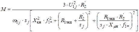 Механическая характеристика асинхронного двигателя для режима неполной компенсации момента, при переменных значениях величины и частоты напряжения питания определяется выражением: