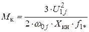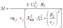 где > 0 – эквивалентное активное сопротивление цепи обмотки статора; – скольжение; – синхронная угловая скорость; – угловая скорость асинхронного двигателя; – число пар полюсов; – относительная частота; – номинальное значение частоты напряжения статора асинхронного двигателя; – регулируемое значение частоты напряжения статора; – индуктивное сопротивление короткого замыкания при номинальной частоте питающей сети; – индуктивное сопротивление рассеяния обмотки статора и индуктивное сопротивление рассеяния обмотки ротора, приведенное к обмотке статора при номинальной частоте питающей сети; – активное сопротивление обмотки статора; – активное сопротивление обмотки ротора, приведенное к обмотке статора; – фазное напряжение обмотки статора; – индуктивное сопротивление намагничивания при номинальной частоте питающей сети.
