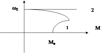 Рисунок 3.9 ω0 – синхронная скорость; Мк – максимальный (критический) момент; Мп- пусковой момент. Для синхронного электродвигателя вид прямой линии параллельной оси момента (рисунок 3.9-2).