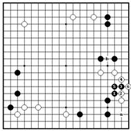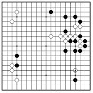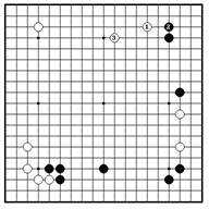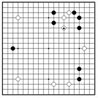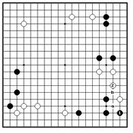 Проблема 8. Фальшивка 1 Ч.1 обычно бывает строгим хасами, но так как черные уже имеют хасами на месте маркированного камня, то это будет дублирование. Обычным ответом на ч.1 является прыжок на “a”, но в этом случае белые устанавливают свои камни в углу ходами 2-6.