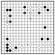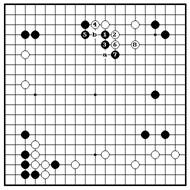 Проблема 40. Неправильный ответ 1 Проблема 40. Неправильный ответ 2 Прилипание ч.1 – слишком Ч.1 здесь – также слабый ход. Белые агрессивный ход.Вариант до 7 – почти прыгают на 2. Черные остаются без неизбежен. Когда белые прыгают на 8, хорошего продолжения, а белые их камни стабильны и перспективы имеют хороший ход на “a” черных на получение огромного мое (который стабилизирует их камни) наверху справа будут разбиты. Более и они угрожают закрыть левую того, черные должны побеспокоиться сторону в “b”. Вторжение на “c” - о разрезании в “a” или проталкивании также остается в распряжении черных в “b”. белых.
