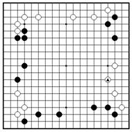 Белые защитили свою позицию на Черные сыграли маркированным правой стороне. Где должны сыграть камнем. Как должны белые черные следущий ход? отвечать? -82-