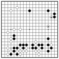 Так как атаковать в данный момент Черные режут 1 и 3 в надежде нечего, то сейчас хорошее время за изолировать белые камни в черных для усиления своего мое наверху центре и атаковать их. Но черные ходом 1. Черные могут надеяться на камни стали тяжелые и уязвимые получение большой территории здесь.