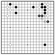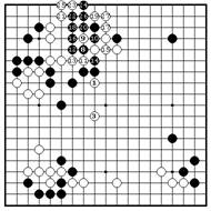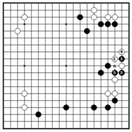 Белые только что расширились Позиция наверху возникла из дзесэки. перед симари маркированным Черные атаковали 1 и вариант камнем. Что должны делать продолжился до 6. Как должны черные черные? продолжить давление на белых? -126-