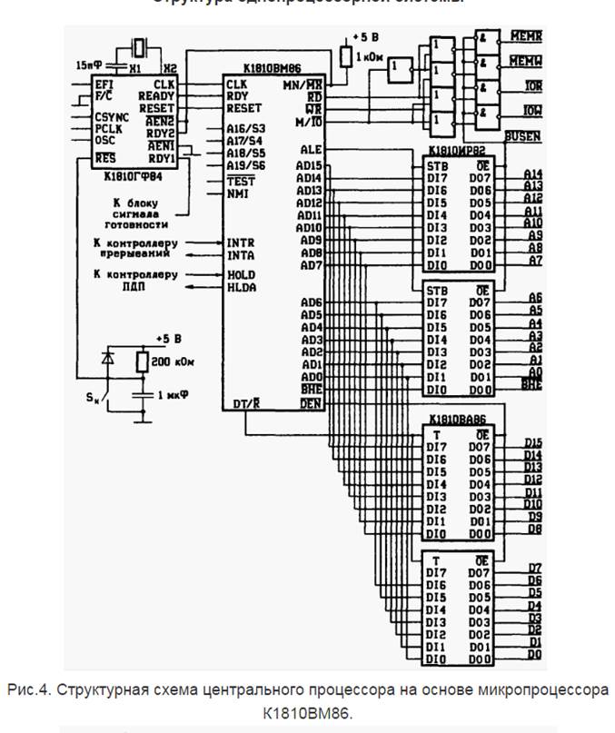 44. Структура однопроцессорной МПС на базе микропроцессора К1810ВМ86