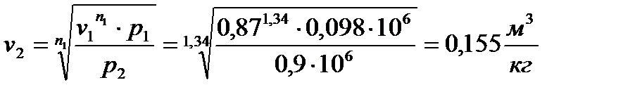 Определение параметров (р,v,Т) всех характерных точек циклаОпределение параметров всех характерных точек цикла начнем с вычисления удельного объема газа в точке 1. Из уравнения Клайперона-Менделеева[1]: pv=RT