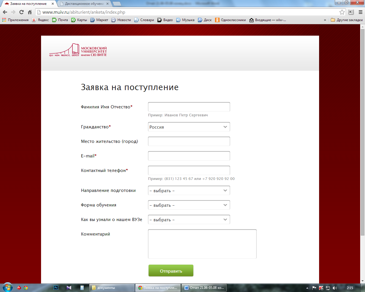 Московский Университет имени С.Ю.Витте (МИЭМП)Используется контекстная реклама в поисковых системах и на одноклассниках. Страница приземления с рекламы - сайт: http://www.muiv.ru/vidy_obrazovaniya/distantsionnoe_obuchenie_elearning/?referer1=yd20?utm_source=yandex&utm_medium=cpc&utm_term=vysshee_obrazovanie_distancionno&utm_content=0763&utm_campaign=distonc-rsy-rf