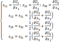 II. Геометрические уравнения (Коши) Они дают связи между компонентами деформации и перемещения.