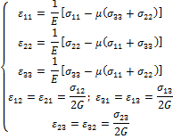 III. Физические или определяющие уравнения (реолог) Эта система описывает связи между компонентами напряжения и деформации. Тем самым характеризуются механические свойства деформируемого материала. Для упругой среды при линейной связи между напряжениями и деформациями имеет место обобщенный закон Гука.