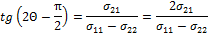 Таким образом угол Θ однозначно характеризуется компонентами тензора напряжений. Выразим компоненты σ11, σ22, σ21 через величины ω и Θ. Из окружности Мора