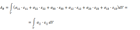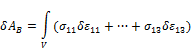 Из механики известен следующий принцип Лагранжа. Если тело находится в равновесии, то сумма работ всех внешних и внутренних сил на возможных перемещениях равна нулю. Этими возможными перемещениями являются виртуальные перемещения. Виртуальным перемещениям соответствуют виртуальные деформации. Запишем виртуальную работу внутренних сил.