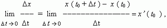 отсюда, v ( t0) = x’ ( t0) , т.e. скорость – это производная координаты по времени. В этом и состоит механический смысл производной. Аналогично, ускорение – это производная скорости по времени: a = v’ ( t ).