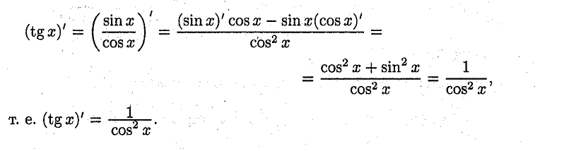 Нахождение производной для tgx
