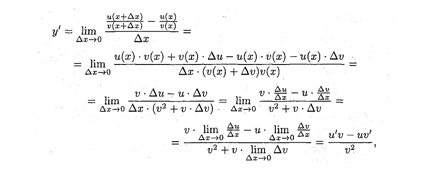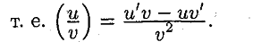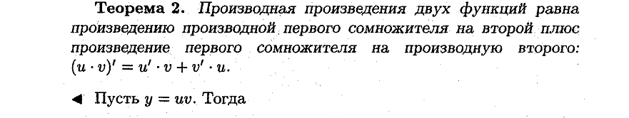 Правило вычисления производных от суммы , произведения, Частного функций. Ответ:
