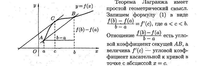 Теорема Лагранжа. Геометрический смысл теоремы Лагранжа. Ответ: Теорема: