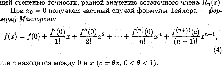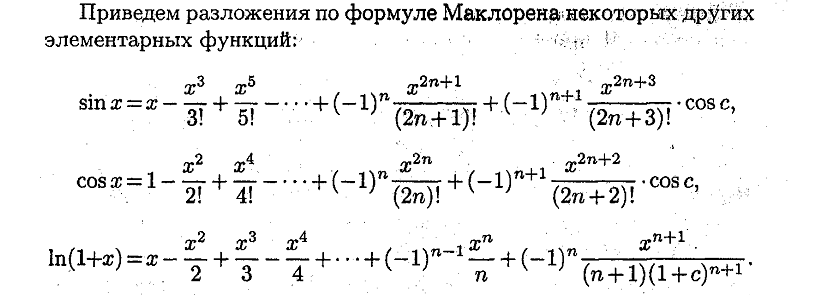 23. Многочлены Маклорена, Тейлора порядка N для функции имеющей производные N+1 порядка в данной точке. Примеры. Ответ: