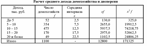 Рассмотрим определение границ генеральной средней, в данном примере – среднего дохода домохозяйства в целом по данному региону, опираясь только на результаты выборочного обследования. Для определения средней ошибки выборки нам необходимо прежде всего рассчитать выборочную среднюю величину и дисперсию изучаемого признака.