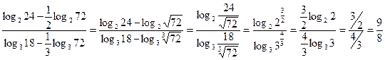 Пример 30. Вычислить Решение: Для решения данного примера необходимо использовать все свойства логарифмов: