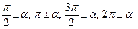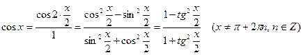 11º. Выражение тригонометрических функций через тангенс половинного аргумента. При доказательстве тождеств, решении тригонометрических уравнений и т.п. часто возникает необходимость выразить все 4 тригонометрические функции через какую-нибудь одну функцию f(x). Для этого пользуются следующими формулами: а) б) в) 12º. Формулы приведения. Это соотношения, при помощи которых значения тригонометрических функций аргументов