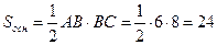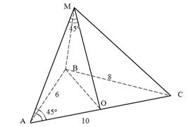для правильной усеченной пирамиды: где S1 и S2 – площади оснований, h - высота, V – объем, P1 и P2 – периметры оснований, l – апофема; Sбок – площадь боковой поверхности. Пример 49. В основании пирамиды лежит треугольник со сторонами 6 см, 8 см, 10 см и все боковые ребра образуют с основанием углы по 45º. Тогда объем пирамиды равен: 1) 62 см3 2) Решение. Дано: MABC – пирамида,