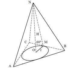 Ответ: Пример 50. Пусть в треугольной пирамиде все боковые грани образуют с плоскостью основания углы по 60º, и в основание вписан круг площадью 9π см2. Тогда высота пирамиды равна: 1) 3 см 2)