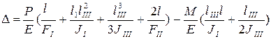 где Е - модуль упругости материала (для алюминиевых сплавов Е=7000 кгс/мм2 , для серого чугуна Е=10000 кгс/мм2; FI и FII - площади поперечных сечений брусков I и II; JI и JIII, - моменты инерций брусков I и III.