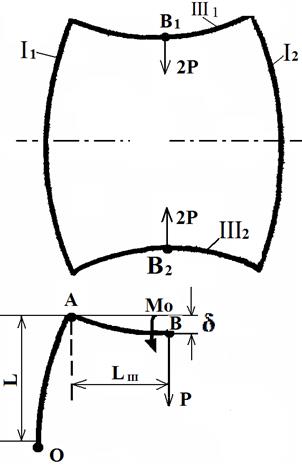Для определения неизвестных Р и М имеется дополнительное уравнение, которое получено из условия, что угол поворота сечения В относительно плоскости заделки 0 в результате деформация равняется нулю: